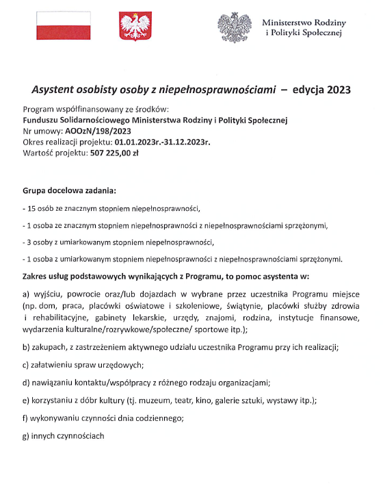Asystent osobisty osoby niepełnosprawnej edycja 2023