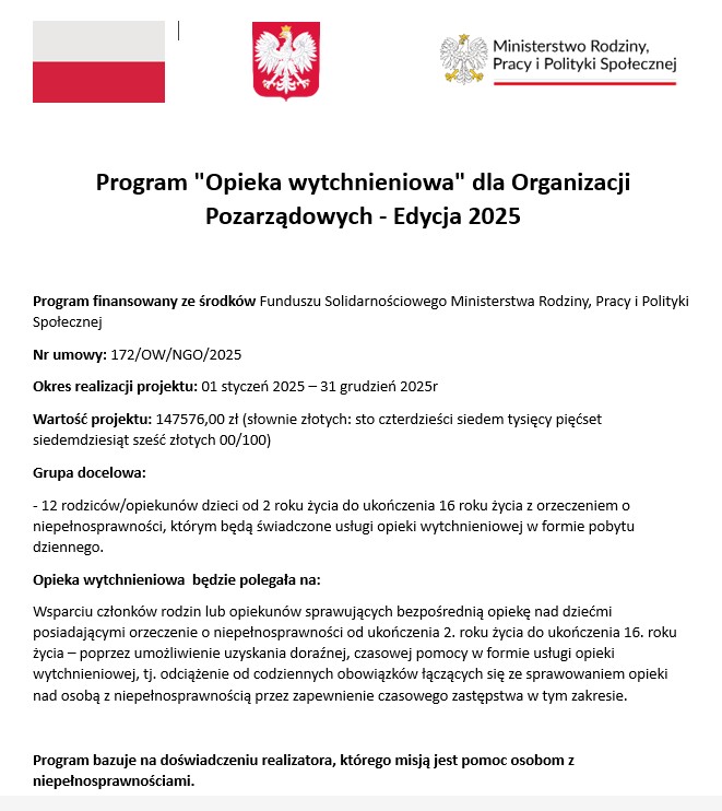 „Opieka wytchnieniowa” dla Organizacji Pozarządowych – edycja 2025