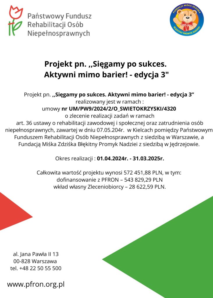 W projekcie pn. ,,Sięgamy po sukces. Aktywni mimo barier! – edycja 3”